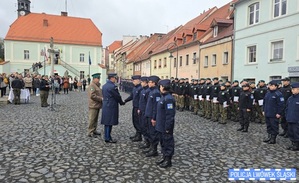 Uroczystość rozpoczęła się przed budynkiem szkoły, gdzie uczniowie klas o profilach graniczno-obronnych, lotniczych, policyjnych oraz strażacko-ratowniczych i artystycznych zgromadzili się wraz z Kompanią Honorową Komendy Wojewódzkiej Policji we Wrocławiu wystawioną przez Oddział Prewencji we Wrocławiu pod dowództwem nadkom. Leszka Hariasza. Przy dźwiękach muzyki marszowej granej przez Orkiestrę Komendy Wojewódzkiej Policji we Wrocławiu uczestnicy przemaszerowali na lubomierski rynek.