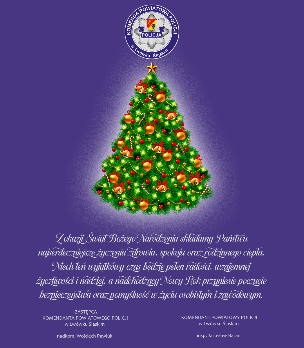 Życzenia świąteczne kierownictwa Komendy Powiatowej Policji w Lwówku Śląskim